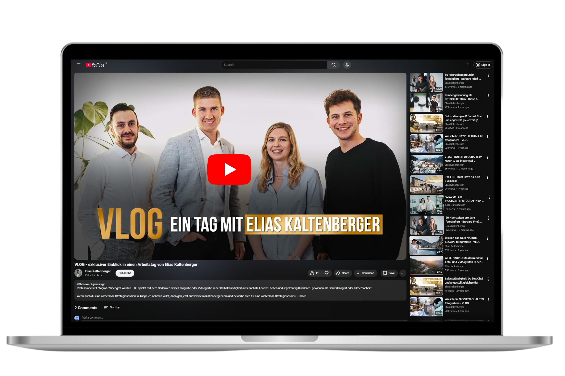 On YouTube, Elias offers insights into his work, his way of thinking, and the strategies behind successful photography businesses. His approach is not superficial, but well-founded, structured, and developed from practical experience.