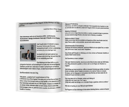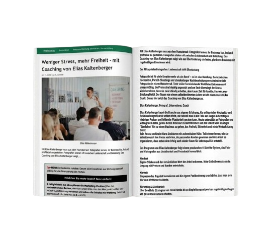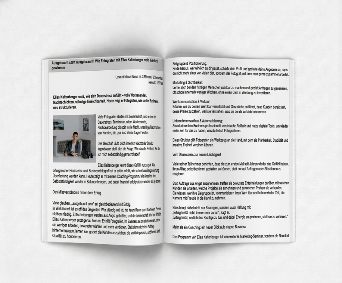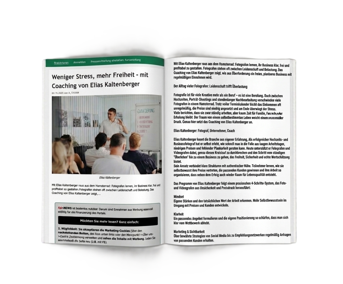 Mit Elias Kaltenberger raus aus dem Hamsterrad: Fotografen lernen ihr Business klar, frei und profitabel zu gestalten.