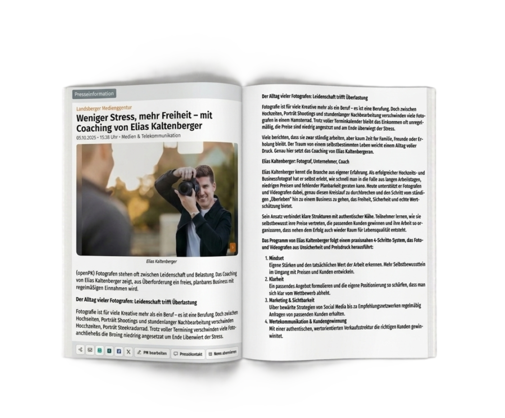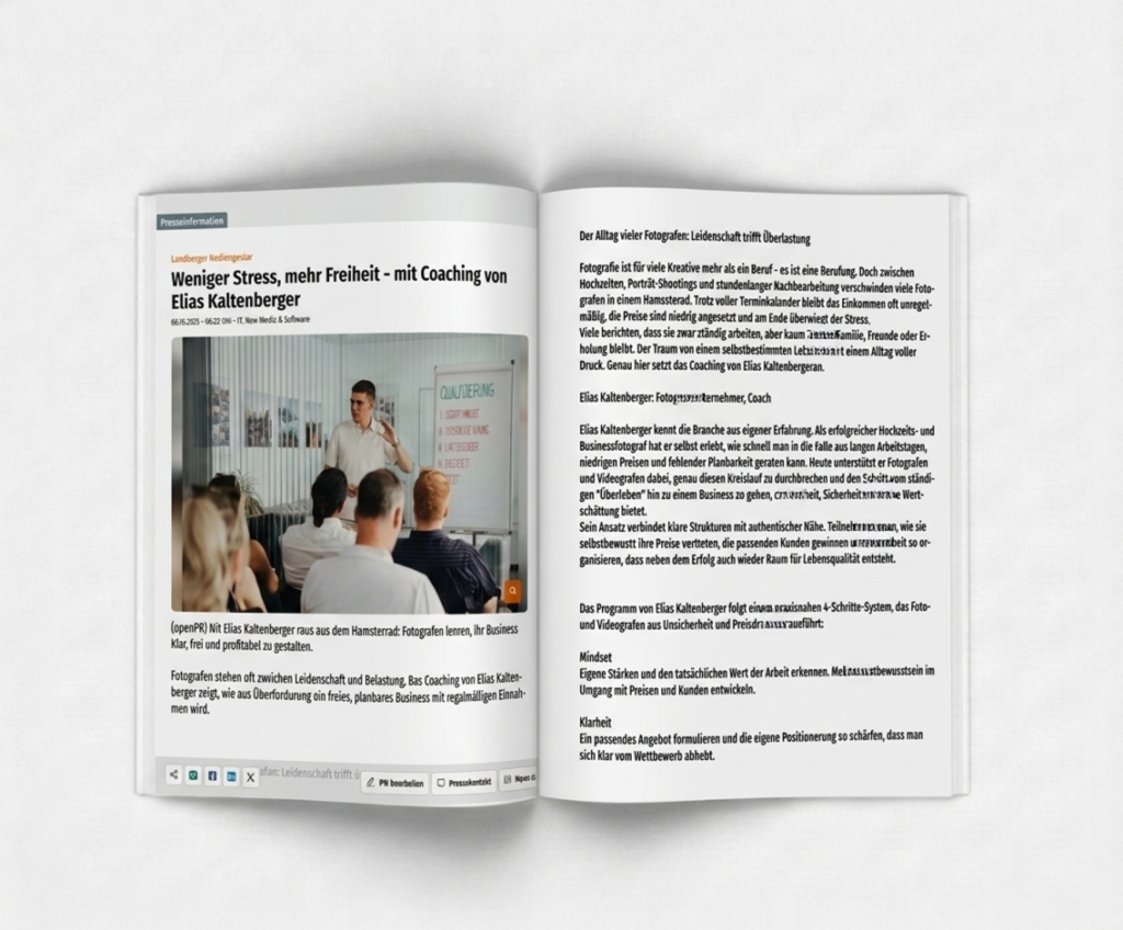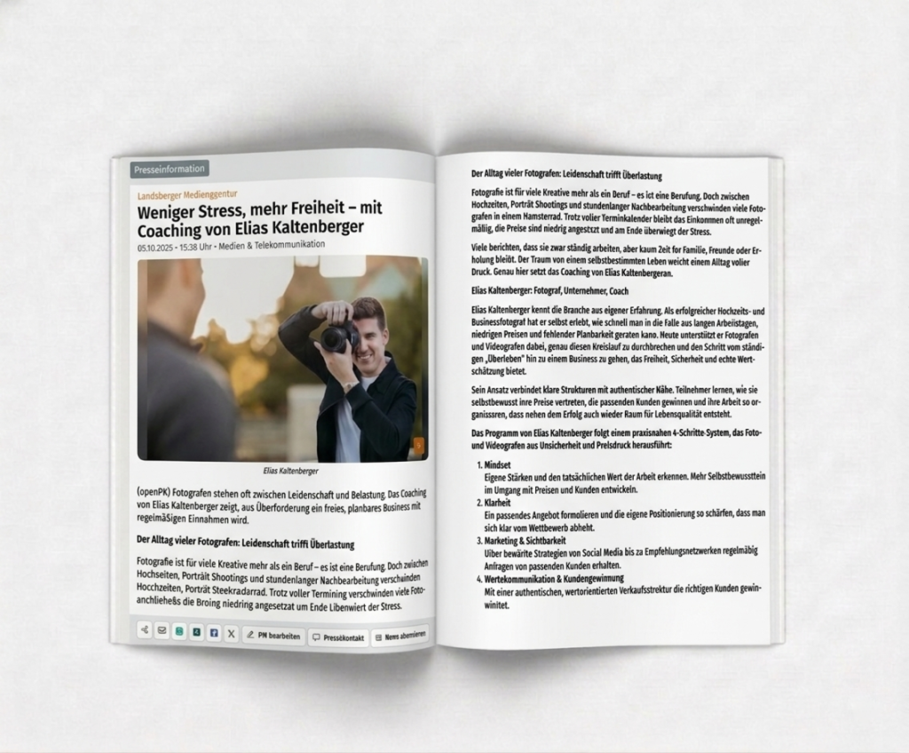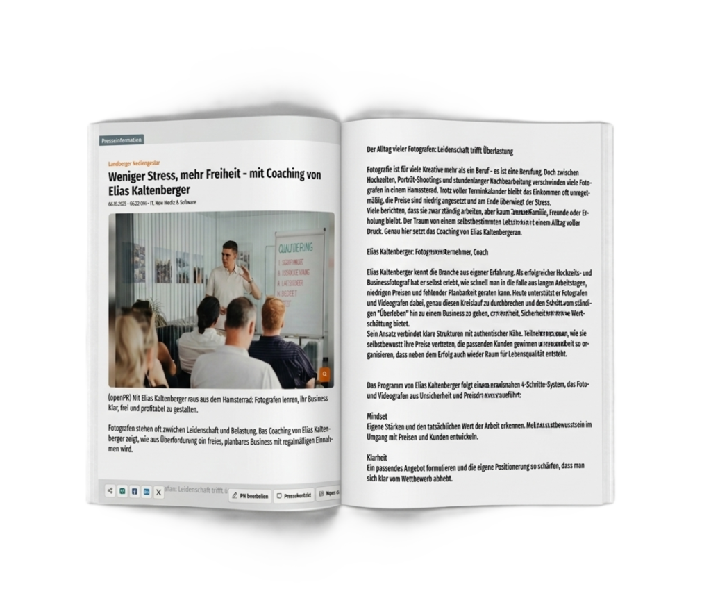 Konkrete Beispiele, wie Fotografen ihre Anfragen steigern, höhere Preise durchsetzen und ein planbares Business aufbauen.